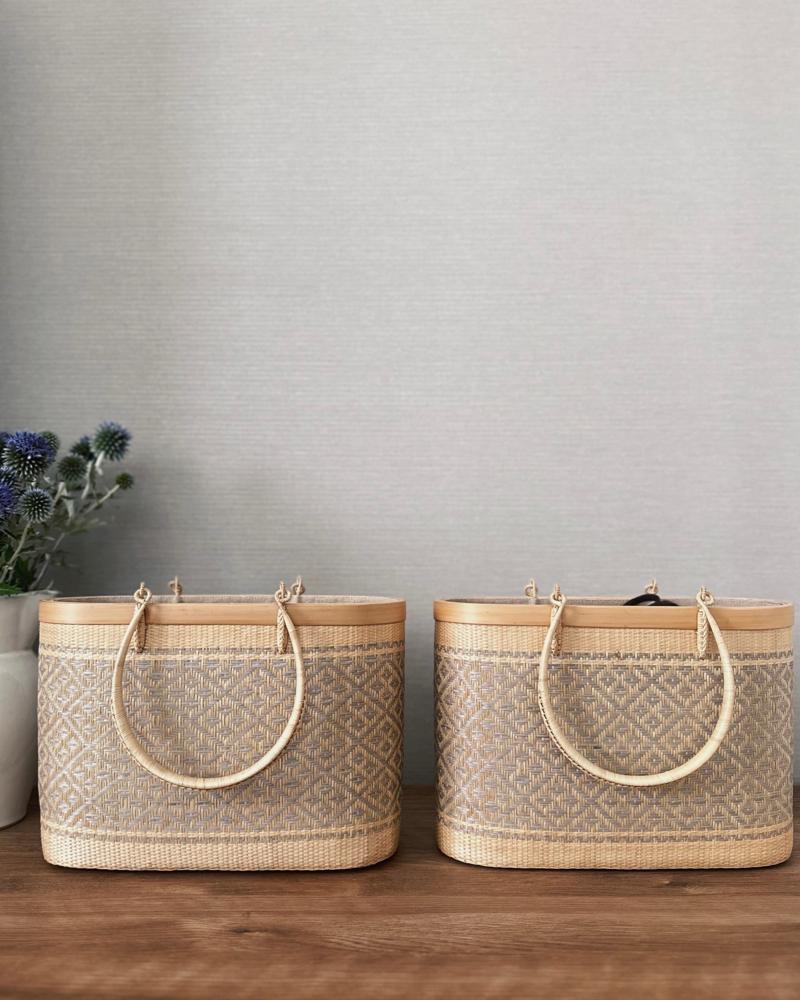 竹籠バックL/割菱模様グレーB/オープンタイプ