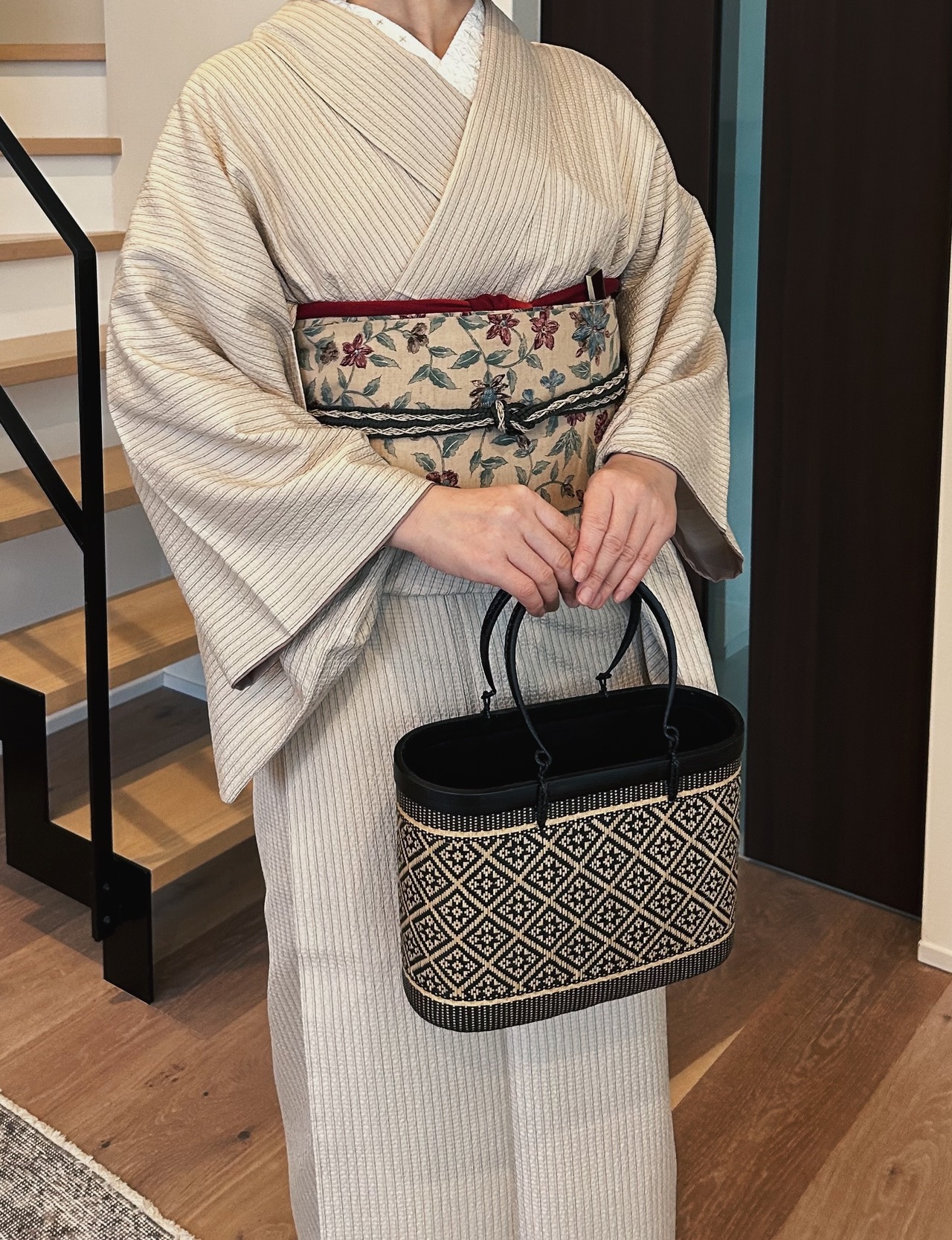 使い勝手が良く、着物はもちろん洋服のコーディネートにもおすすめです。内側にファスナー付きのポケット、ファスナーなしのポケットがひとつずつ対面についています。